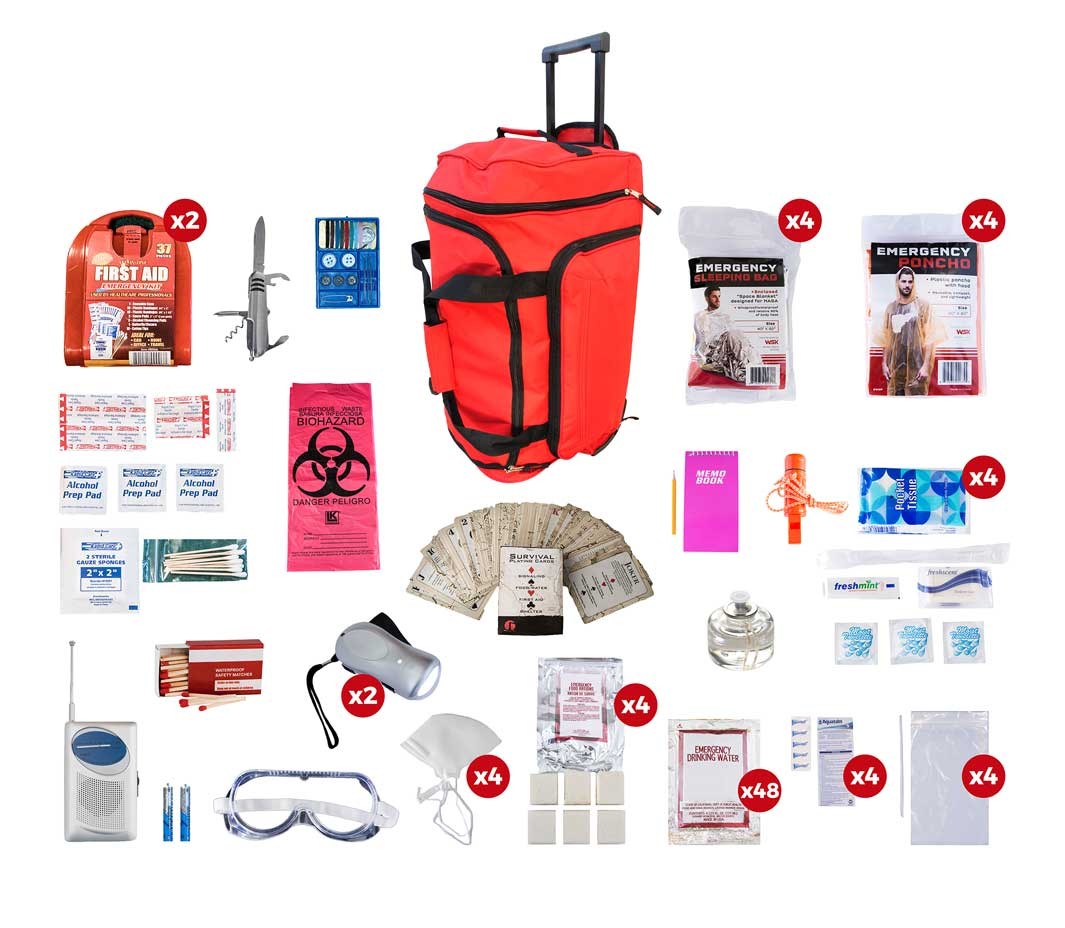 This kit was designed using advice from experts in the field of emergency preparedness. It follows guidelines offered by government agencies and nonprofit preparedness organizations. This 4-person deluxe kit has a retail value of $180.