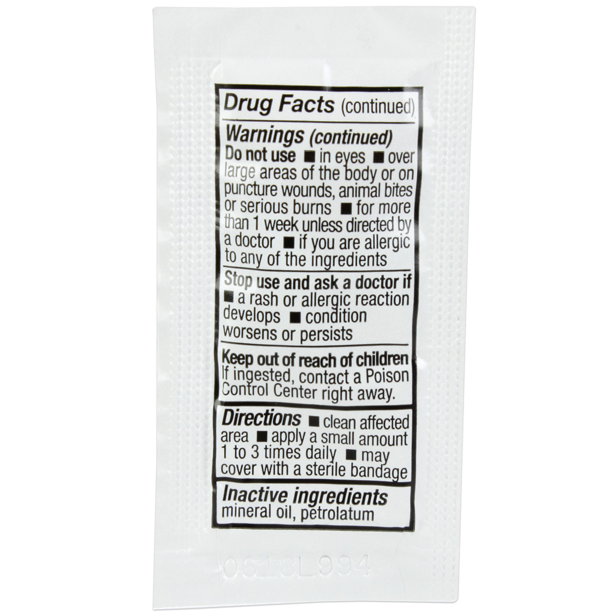 0.9g Single Antibiotic Ointment with Bacitracin (144 ct. Box) Pouch: 1.25″ x 2.48″ / Box: 3.25″ x 3.5″ x 6.38″NDCÂ 61010-5601-2